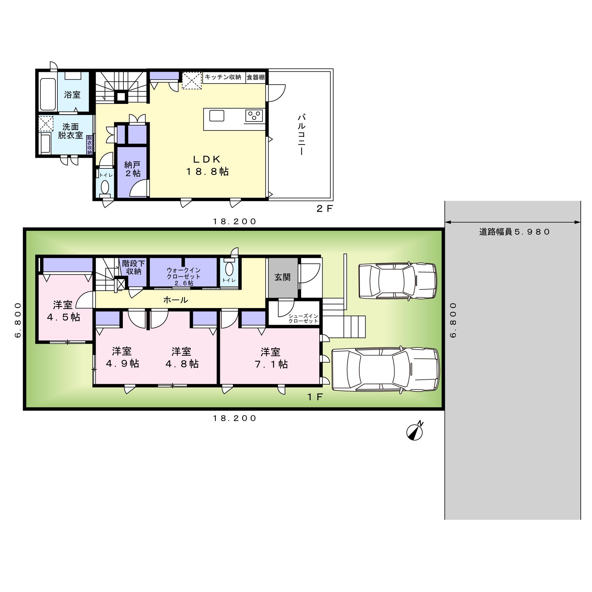 | 間取り詳細 | 2階で家事が完結する「神動線」 完璧なプライバシー分離 生活空間(2階)と 豊富な収納と洋室4部屋 WIC、納戸、 |